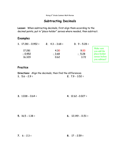 Rising 6th grade math worksheets. Grade 6 Math Worksheets PDF - mathskills4kids.com Grade 6 Math Worksheets PDF - Sixth Grade Math Worksheets with Answers is an ultimate tool useful to test your kid's skills on different grade 6 math topics. These our math printable worksheets for grade 6 have covered all major areas of grade 6 math, some of which include; Whole numbers, multiplication, division, exponents and square roots ... PDF Rising 6th Grade Summer Math Packet - Woodward Academy Rising 6th Grade Math Packet ... Please put the pages in order and staple before turning in the packet to you math teacher on the first Friday after the beginning of school. ... be shown on separate paper, clearly labeled with problem numbers. All final answers should be written on the actual worksheets. 2 Addition /Subtraction- Show all work Browse Printable 6th Grade Worksheets | Education.com 6th grade Math Worksheet Novel Study: Esperanza Rising: Discussion Guide #4 Worksheet Novel Study: Esperanza Rising: Discussion Guide #4 After reading the last sections of Pam Muรฑoz Ryan's novel Esperanza Rising, engage your students in a discussion with these questions! 6th grade Reading & Writing Worksheet Convert Metric Units: Length Worksheet Grade 6 Mental Math Worksheets | Free Printables - FMW These free worksheets are designed to give students repetition in addition, subtraction, multiplication and division. The ability to calculate problems quickly and accurately in Mathematics is important. The resources below also have the students working on multiplying and dividing by 10 and 100, which is important to understand in grade 6.